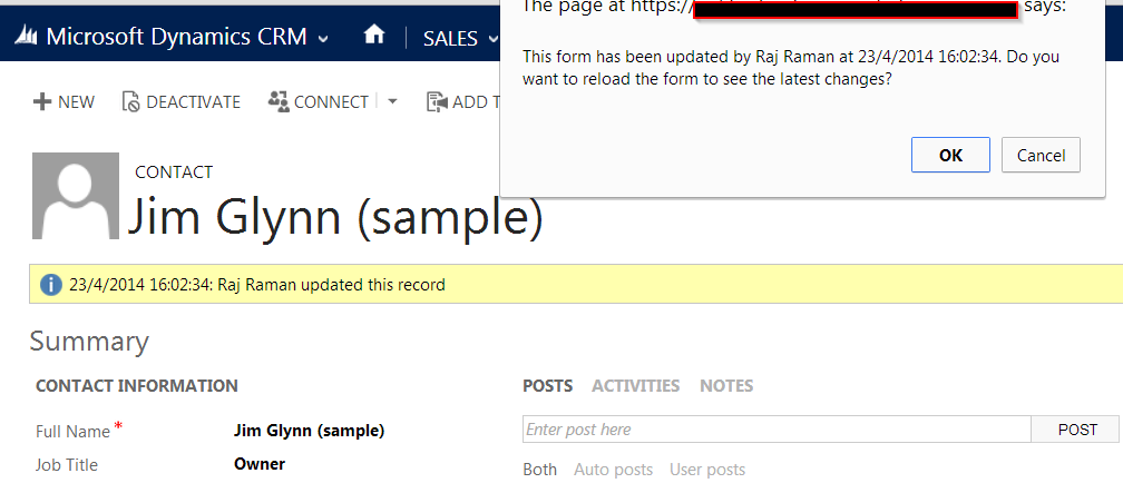 Below is the sourcecode for form_script.js.Here is what the form displays when another user has opened the same record.