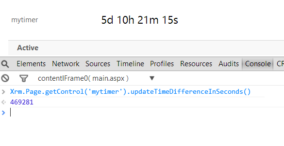 CRM2013 SP1 has added a new control called timer control. Once the timer control is setup and added to the form, it starts ticking based on the various setup criteria. Getting the current timer value using Javascript is easy. Just use updateTimeDifferenceInSeconds method, which will return the current ticks in seconds.