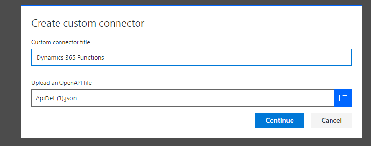 Import an OpenAPI file dialog