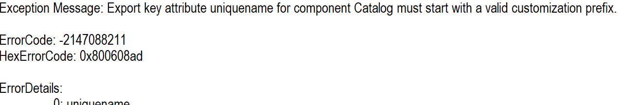 The unique name of the catalog needs to have a publisher prefix, otherwise you will get this error.