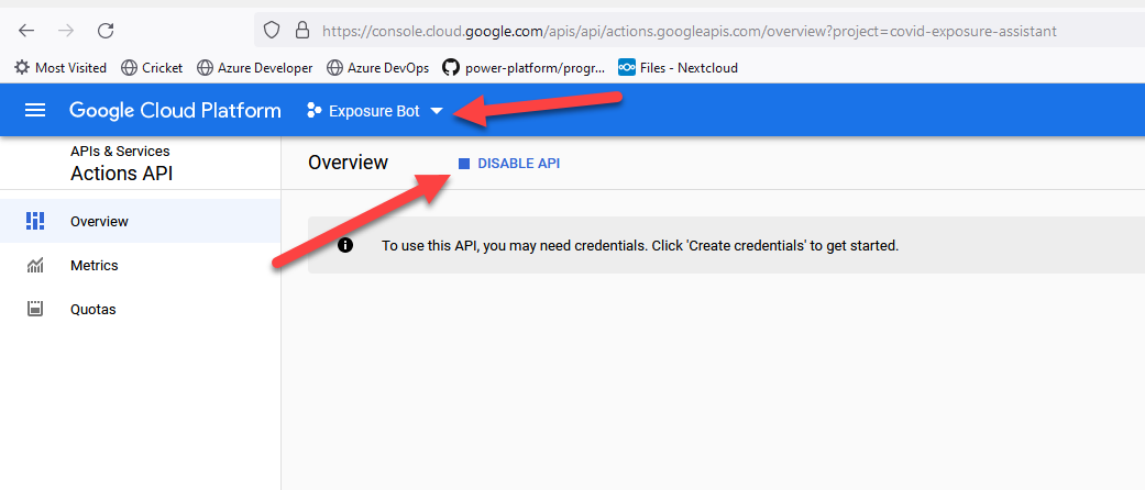 - Action API is enable for the project. Navigate to https://console.cloud.google.com/apis/api/actions.googleapis.com/overview