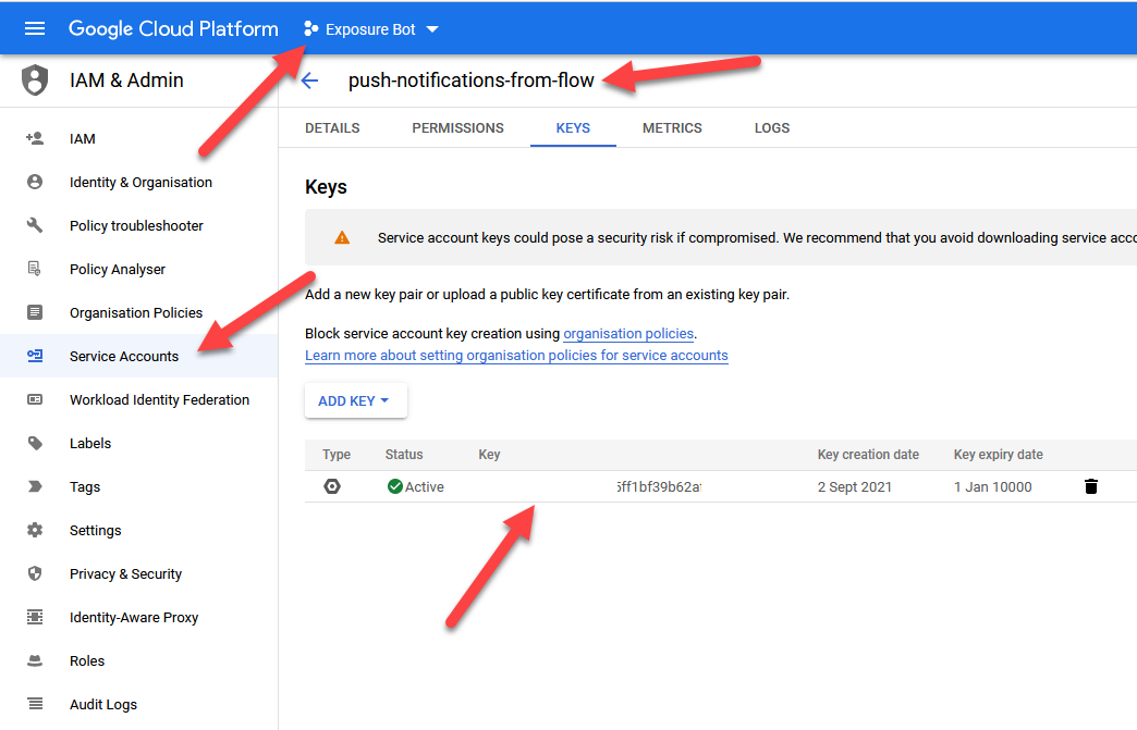 Both enabling Actions API and creating service account for the project are documented in https://codelabs.developers.google.com/codelabs/actions-user-engagement/#3, which you can refer for additional instructions. After you download the JSON from service account copy only the key and keep it aside. We would need it for adding to key vault. Don’t include the —BEGIN PRIVATE KEY and –END PRIVATE KEY parts. Copy just the key as highlighted.