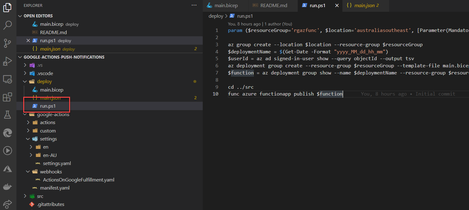 If you want to deploy from command line and have Bicep and Az CLI installed, I have also included a PowerShell script that you can use to deploy from your local machine.