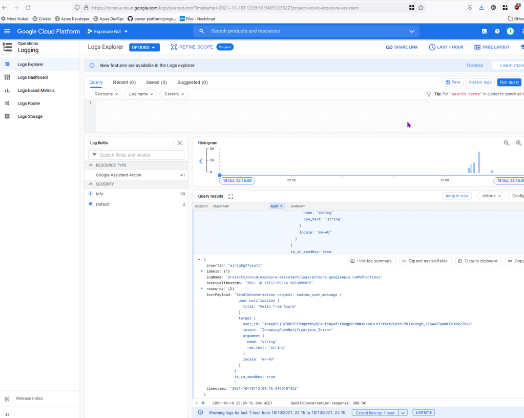 After all of this is setup you would be able to chat with the bot from your Google Assistant.