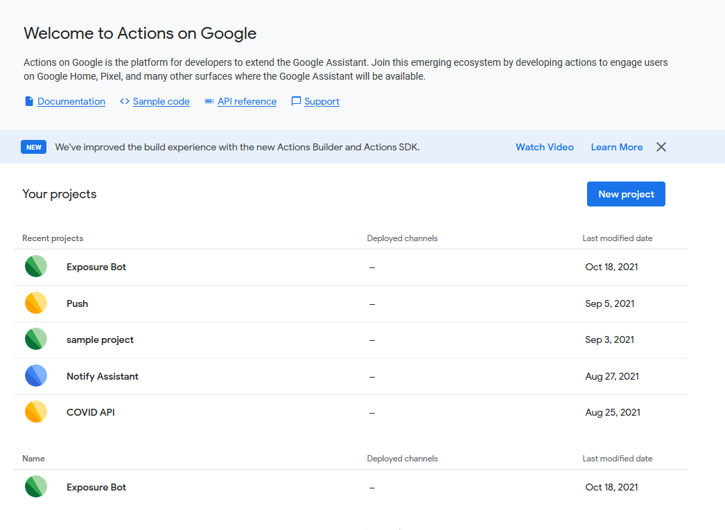 The starting point to build the virtual assistant solution is create a new Actions project. You need to head over to https://console.actions.google.com/ to create a new Actions project.